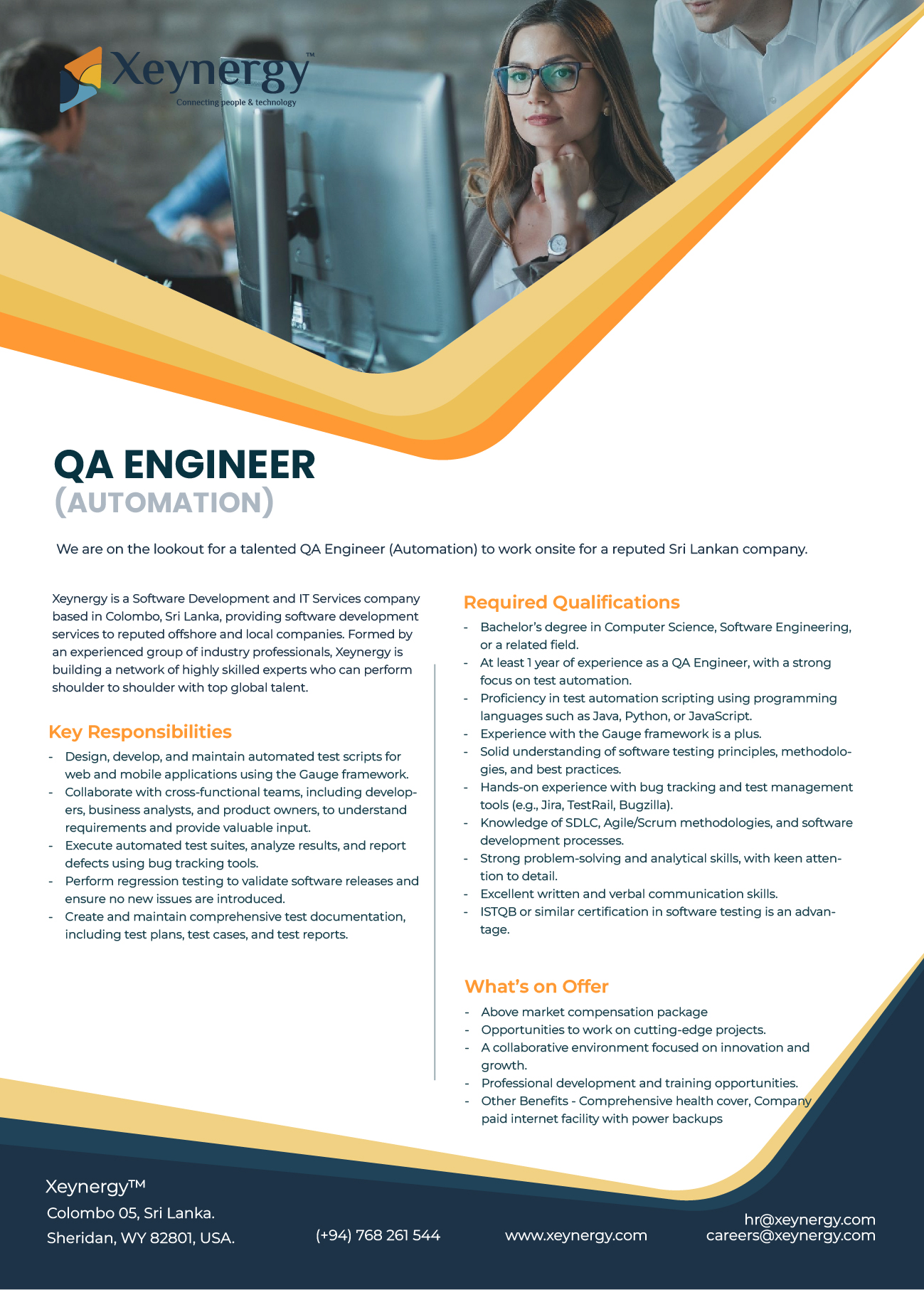 At Xeynergy, we believe in the power of collaboration, the excitement of innovation, and the potential of every individual. As a part of our team, you'll experience a dynamic environment that encourages creativity, embraces diversity, and fosters growth. We're not just a workplace; we're a community driven by a shared passion for excellence. Join us on a journey where your ideas matter, your skills are valued, and your career aspirations are nurtured. Discover limitless opportunities at Xeynergy and be a part of shaping a future where innovation meets impact.